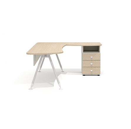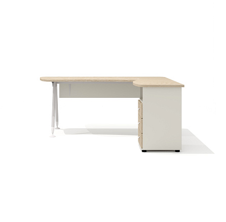 - GM-118R + G-118.1R + G-27 + G-87 Составной эргономичный стол на металлокаркасе правый Gamma дуб выбеленный N/беж