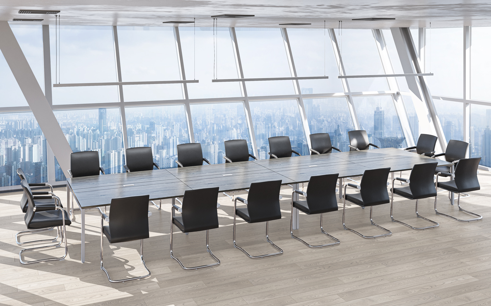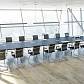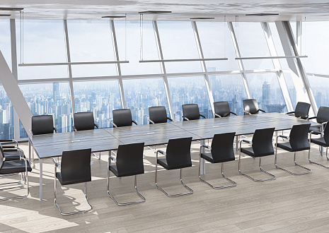 - В собранных рабочих и конференц-столах расстояние между опорой и столешницей составляет 15 мм — такое дизайнерское решение визуально облегчает всю конструкцию.