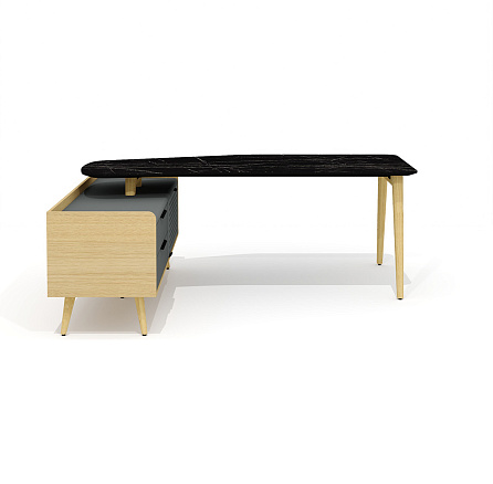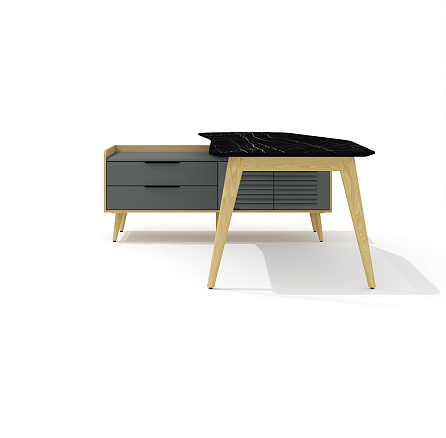 Rem-200.1L + Rem-33L Стол руководителя эргономичный с опорной тумбой Remo мрамор черный / графит