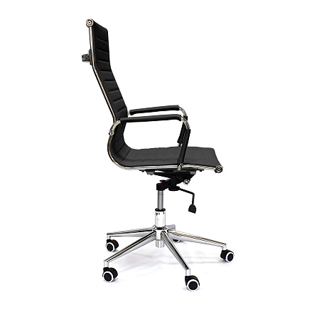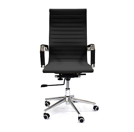 Кресло руководителя RT-03Q — кресло с обивкой из экокожи, с удобной спинкой с поддержкой спины. Хромированные подлокотники снабжены накладками из экокожи. Регулировка высоты и наклона.