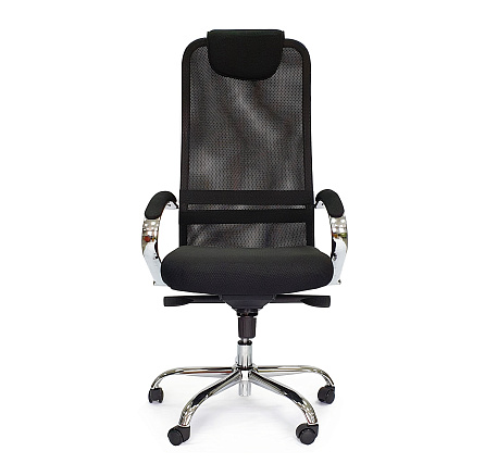 Кресло для руководителя RT-2031 — кресло с обивкой из сетчатой ткани, подлокотниками из хромированного металла с мягкими тканевыми накладками и подголовником. Регулировка высоты и наклона.