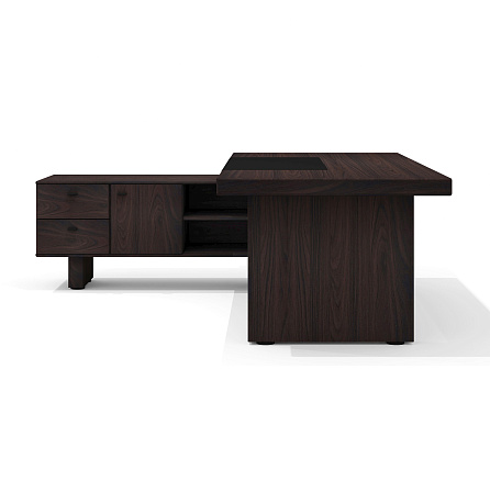 • Цвет экокожи/ткани: черная экокожа (бювар), тёмно-серая ткань (обивка днища выдвижных ящиков).