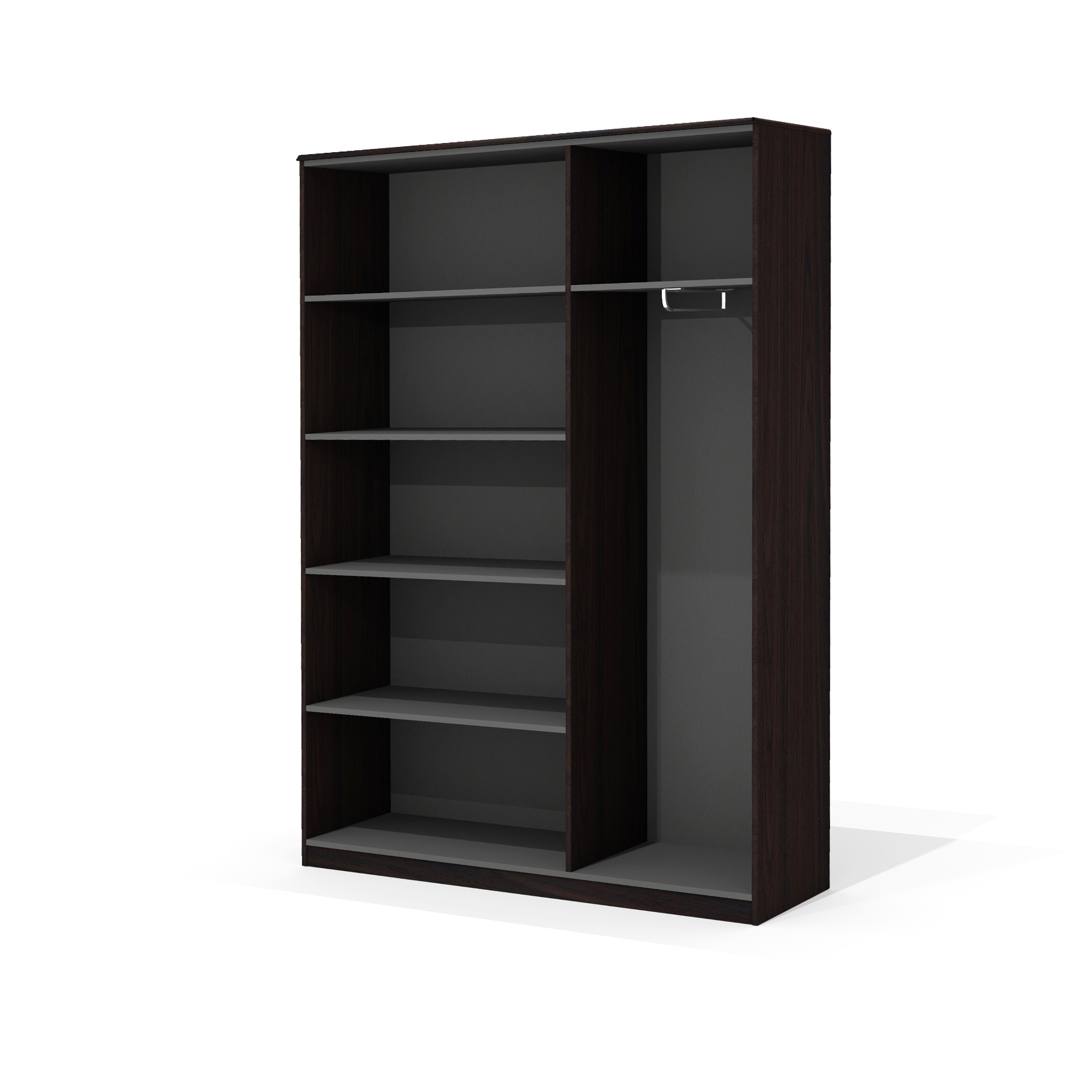 - Наполнение: 2 отделения: с 4 полками и с выдвижной штангой для одежды.