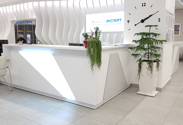 Компания «МебельСтиль» оборудовала клинику «Эксперт» в центре Иркутска — многопрофильное медицинское учреждение с поликлиникой и стационаром.